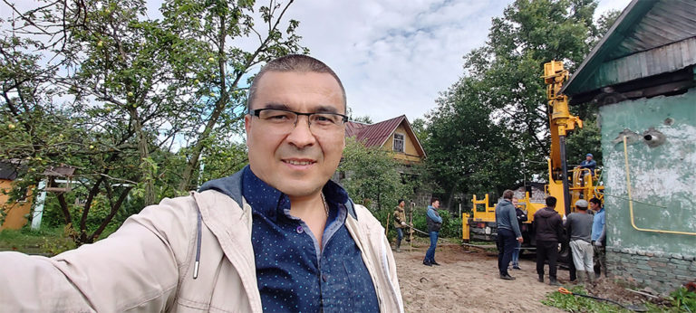 Самый сложный фундамент за всю историю компании. В месте застройке нового дома была воронка от взрыва бомб ВОВ, засыпанная насыпным грунтом. Малая плотность, водонасыщеность и расчеты привели к выводу монтировать металлические сваи до твердого грунта на глубине 19 метров. Несмотря на дороговизну, это был самый экономный тип фундамента в данном случае.