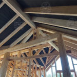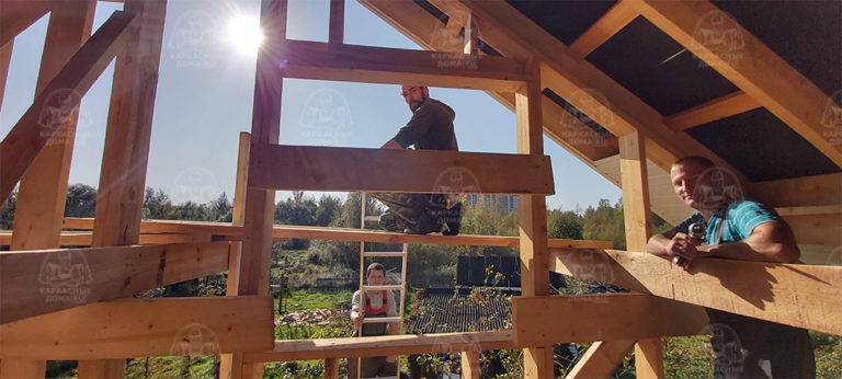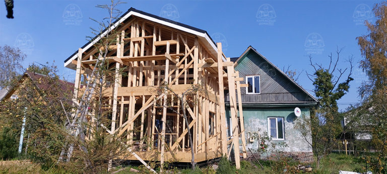 Сложность строительства состояла в том, чтобы новый каркасный дом со свайно-винтовым фундаментом, пристроить к уже существующему старому дому.