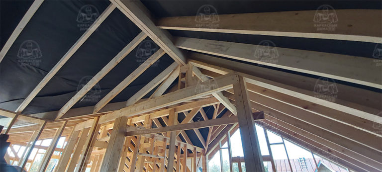Двухскатная, трехфронтонная крыша. Кровельный материал - «Ондулин SMART», цвет - чёрный, с доборными элементами. Производство Россия.