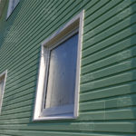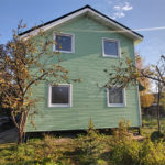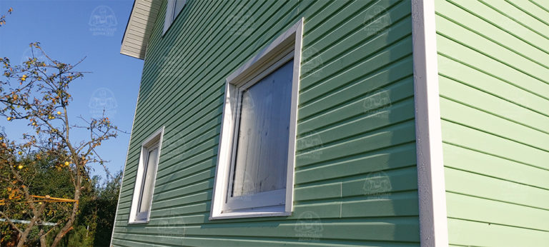 Наружная отделка - ветрозащитные плиты «Изоплат», толщиной 12 мм. Затем, через контробрешетку, смонтирован сайдинг «Docke Standart» Корабельный брус «D4D», Simple. Цвет: крем-киви.