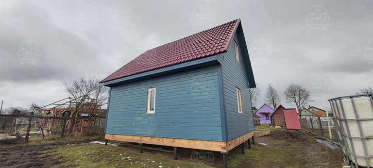 Строительство каркасного дома с мансардой и эркеромРазмером 7x7 для сезонного проживания