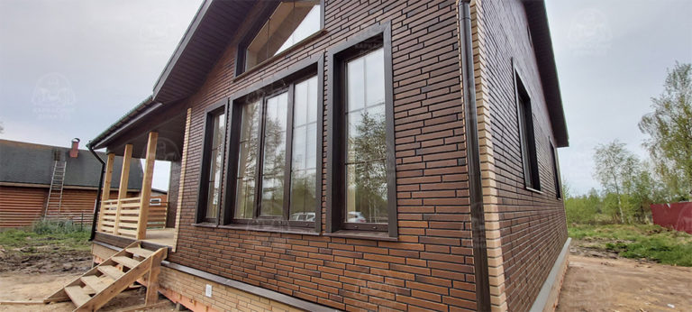 Наружная отделка - ветрозащитные плиты ISOPLAAT, толщиной 12 мм. Затем, через контробрешетку, смонтированы панели ПВХ Docke KLINKER (Калахари), Docke KLINKER (Каракумы).