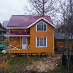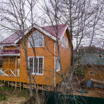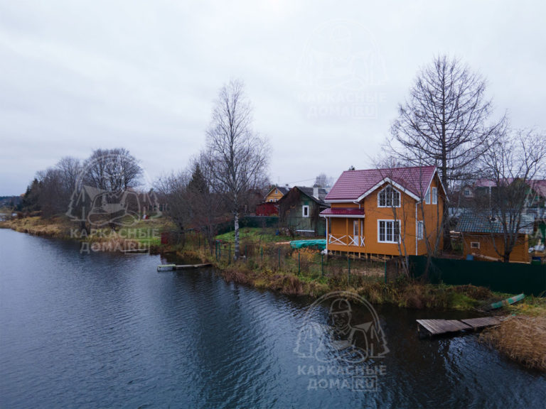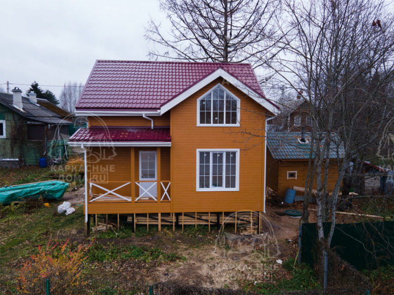 Каркасный полутораэтажный дом, для круглогодичного проживания, размером 8,0 х 8,0 м, со 128 м2. Имеет: 5 спален, 2 санузла, большую гостиную, 2 террасы, балкон, тамбур, 2 входа.