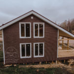 - Наружная отделка- ветрозащитные плиты «Белтермо», толщиной 20 и 35 мм, шип-паз. Затем, через вентзазор- фасадная панель «Docke» Berg, цвет-коричневый.