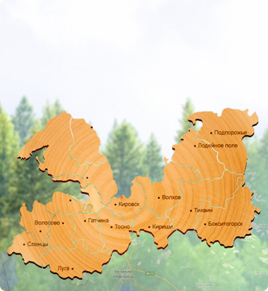 Пушкин, Тосно, Выборг, Сестрорецк, Приозерск, Бокситогорск, Гатчина, Лодейное Поле, Волосово, Кингисепп, Ломоносов, Сланцы, Волхов, Всеволожск, Кириши, Луга, Тихвин, Кировск, Подпорожье, Карелия.